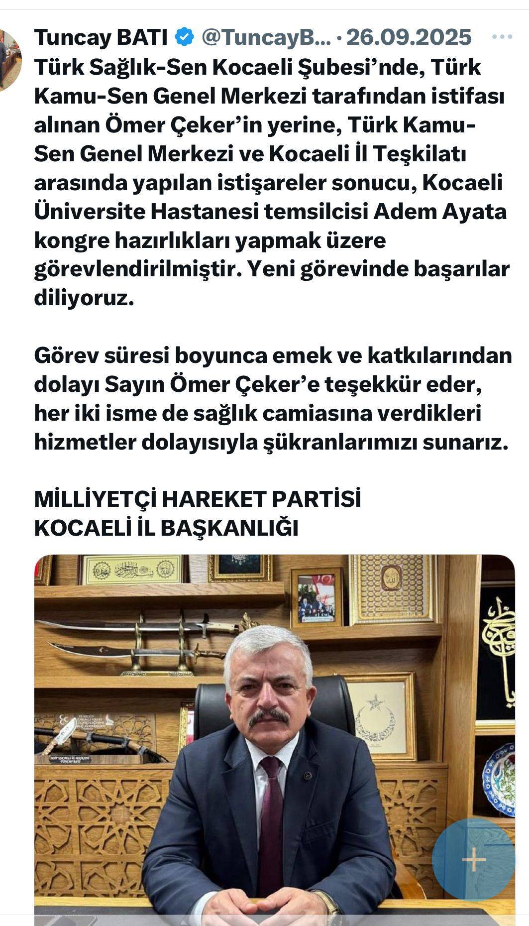 Türk Sağlık Sen Genel Merkezi, bugüne kadar binlerce basın açıklaması ve eylem yaparak sayısız kazanımlar elde etmiş Kocaeli Şube Başkanı Ömer Çeker’i görevden aldı.